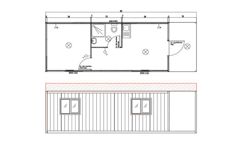 MODÜL 8   : 300*850 cm ölüsünde 21 m², 1+1 4.5 m2 verandalı  olarak toplam 25.5 m2 tasarlanmış olan konteyner ev modülümüz Sandviç Panel ile üretilmiş son derece kullanışlı bir modülümüzdür. Giriş kısmı açık mutfak olarak kullanılan  , yatak odası olarak da  kullanılabilecek   ayrıca bir odası olan ürünümüzün içinde wc, lavabo ve duş teknesi kullanıma hazır şekilde teslim edilmektedir. Standart konteyner modellerinden ayıran en büyük özelliği ise kırma çatısıdır. Tavan arası yalıtımlıdır. Şirin bir ev görünümünde olan konteyner ev modelimiz bir bütün olarak taşınmaktadır. Elektrik ve Su  bağlantılarının yapılmasıyla kullanıma hazır duruma gelir.